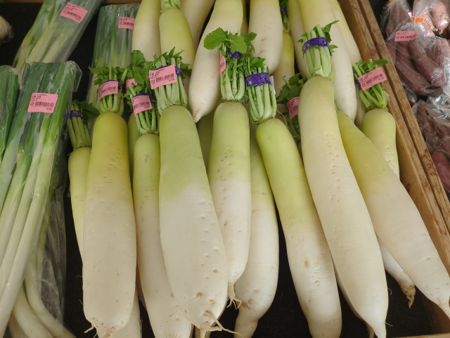 佐藤さんの大根が入荷しました。サイズも良く用途色々!ぜひご利用下さい。