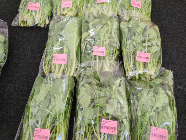 小森さんのからし菜、くきたちなが入荷しました。新鮮野菜ぜひご利用下さい。