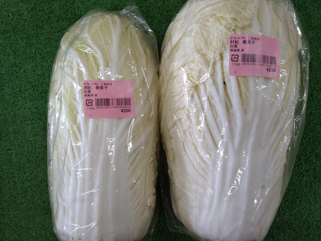 グラントマト二本松店です。 村松さんの白菜が入荷しました! 肉厚で甘みたっぷり、生で食べてもシャキシャキ甘い美味しい白菜ですので、鍋物や炒め物にもオススメですよ!2026年03月09日