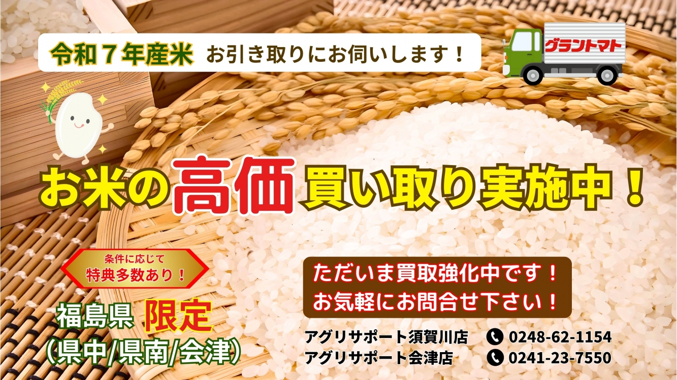 今月も引き続き、皆様が丹精込めて作られた令和7年産米新米の強化買い取りを実施しております