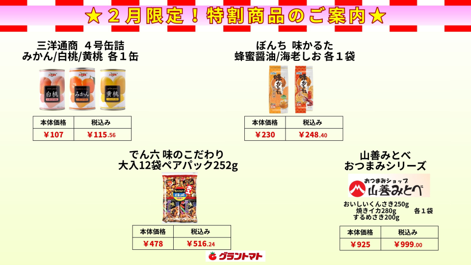 2026年2月10日 ☆2月限定特割商品のご案内☆